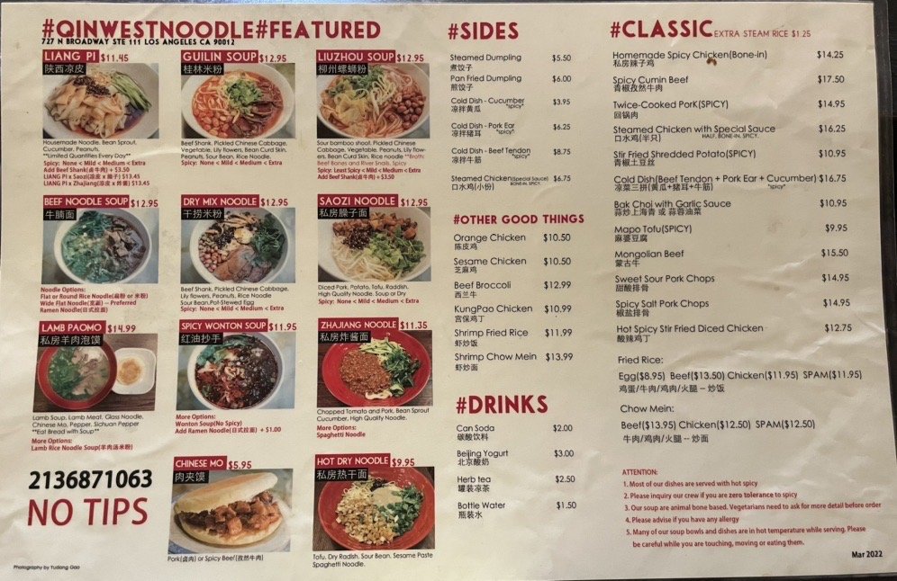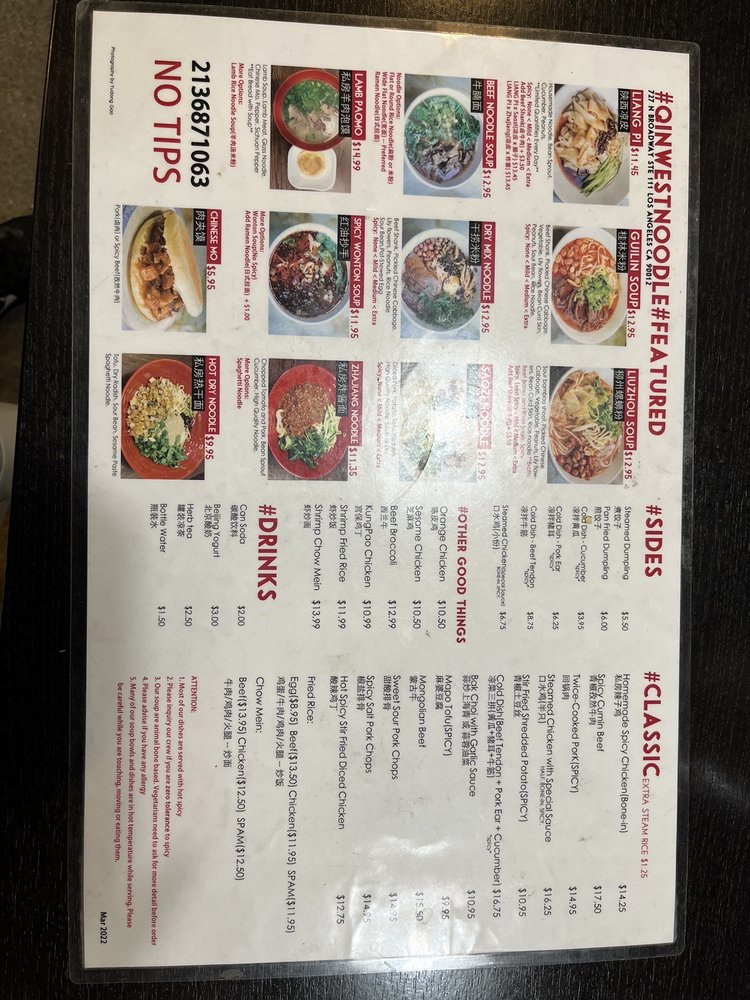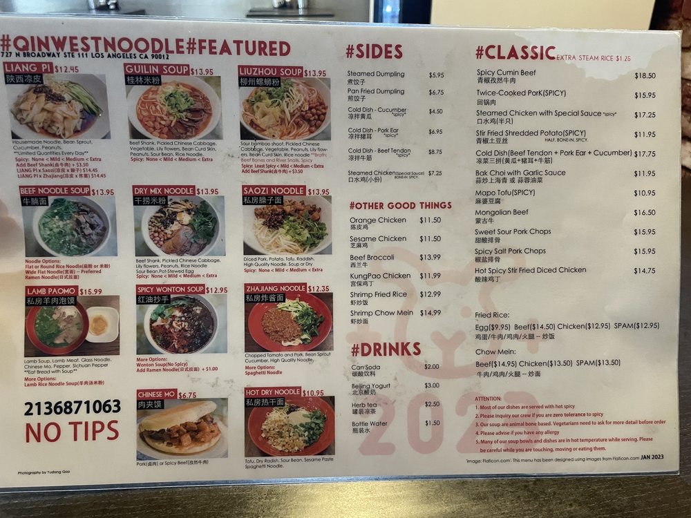 Qin West Noodle offers authentic Chinese noodles in Los Angeles, with options for delivery, takeout, and reservations. Customers rave about the flavorful soup, steam dumplings, Chinese Mo, and hand-shredded chicken. The menu changes regularly, keeping things exciting for diners. The Liang Pi dish stands out with homemade noodles, cucumbers, peanuts, and bean sprouts in a refreshing sauce. A must-try is the Chinese Mo, a spicy and filling open bao dish. The restaurant's warm ambiance and caring staff add to the dining experience. Prices are reasonable, making it a go-to spot for Chinese cuisine. Whether dining in or getting takeout, Qin West Noodle promises a culinary haven for Chinese food enthusiasts.